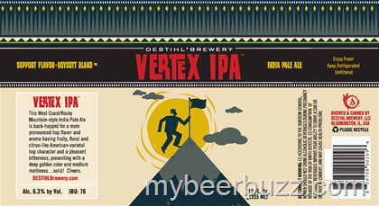 Here we have the can packaging for Destihl Brewery Vertex IPA. This West-coast-style IPA will be packaged in 12oz cans and come in at 6.3% ABV and 76 IBU.