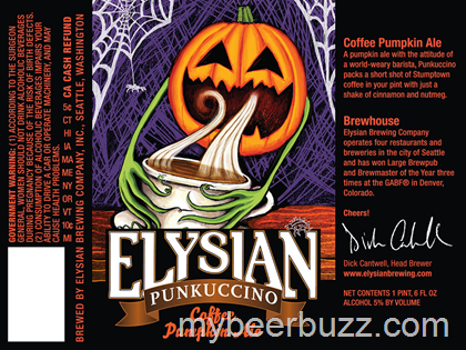 We brought you the news of this beer, and now we get to see the approved label. This is Elysian Punkuccino and it is a Coffee Pumpkin Ale that uses a short shot of Stumptown coffee as well as nutmeg and cinnamon. This beer will be packaged in 22oz bottles and come in at 5% ABV. Here’s the 2017 packaging: