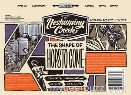 Here’s a peek coming courtesy of Neshaminy Creek at the can package for their new The Shape Of Hops To Come Imperial IPA. As you can see this beer will use Apollo, Newport, Simcoe, Topaz & Citra hops, it will be packaged in 16oz cans (Coming in Sept) and I comes in at 9.5% ABV. This beer is available for growler fills beginning 8/15. Details from Neshaminy Creek: