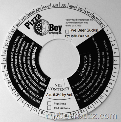 Today we get to see the keg packaging for Pizza Box Brewing Rye Beer Sucks! This Rye IPA will come in at 5.3% ABV and I suspect it doesn’t suck.