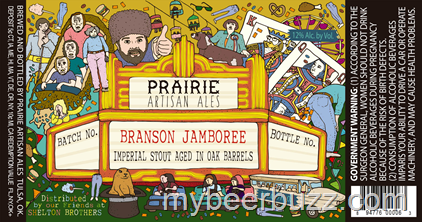 Here’s another great beer (and label) coming from Prairie Artisanal Ales. This is Branson Jamboree and it is an Imperial Stout aged in oak barrels. Look for Branson Jamboree to be packaged in 16.9oz bottles and come in at 12% ABV. .