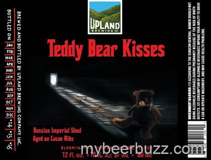 Here’s a peek at the 2014 version of Upland Brewing Teddy bear Kisses. This Russian Imperial Stout is aged on cacao nibs, it will now be packaged in 12oz bottles and come in at 10% ABV.