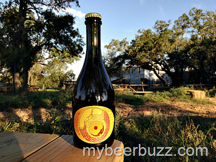 Our second blend of Aurelian Lure is made from Hill Country well water, malted barley, malted wheat, hops, brewers yeast, naturally occurring wild yeast and native bacteria, and apricots. It’s 6.0% alcohol by volume, has a finishing gravity of 1.001 (0.25 Plato), and is 3.4 pH. Like all our beer, it is unfiltered, unpasteurized, and 100% naturally conditioned by refermentation in the serving vessel, as opposed to being artificially force-carbonated.