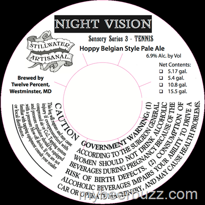 These are only keg labels so far, but today you get to see Stillwater Artisanal Ales Sensory Series No 3 - Tennis an the beer is named Night Vision.  This beer is a Hoppy Belgian-style Pale Ale that comes in at 6.9% ABV.  Up next we also have Damiana Ale, and this beer will come in at 5.3% ABV.  Stay tuned for more details.