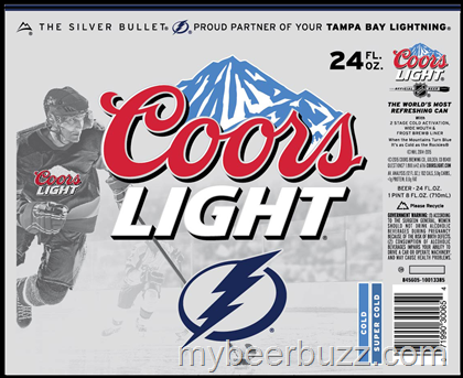 Here we have the 24oz Coors Light can that commemorates Tampa Bay lightning Hockey. This big 24oz can has 2-stage cold activation, wide mouth and frost brewed liner and the beer remains the same at 102 calories per 12oz serving.