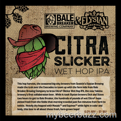 Elysian is no stranger to collaboration. We've done a bunch of them, and they've all been fun. Maybe our experience with working together is the main thing we brought to the party with Bale Breaker. I mean really--do they need any help putting together a beer using wonderfully fresh hops from Loftus Farms, the family business from which Bale Breaker sprang two years ago? Because of course that was the core idea, to confer on a recipe for a pale ale absolutely packed with wet Citra hops. And Bale Breaker had never done a collaboration before. Well, we'd never made a beer with hops whose journey from picking barn to brewery lasted about five minutes before, either. Sometimes the things that seem most obvious are the ones that are best offered to others.