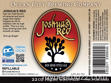 Here’s an interesting new package coming from Ocean City Brewing Co. This is Joshua’s Red and it is a Red Irish-style Ale. This beer comes in at 4.5% ABV, but what’s really interesting here is that this is a 22oz refillable micro-growler.