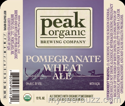 Here we have Peak Organic Brewing Pomegranate Wheat Ale. This beer uses organic pomegranate juice, acai juice and coriander. Look for Pomegranate Wheat Ale to be package din 12oz bottles and it come sin at 5% ABV. .