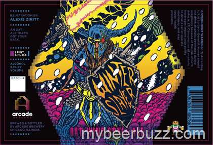 Here’s a colorful new label and beer coming from Arcade Brewery in Chicago, IL.  This is Winter Slayer and it is an Oat Wine style ale.  This label is illustrated by Alexis Ziritt, the beer will be packaged in 22oz bottles and it comes in at 9.1% ABV.