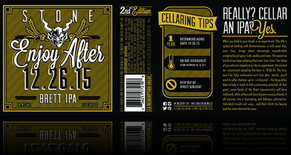 ESCONDIDO, CA (Dec. 16, 2014) – Age an India pale ale? Really? Stone Brewing Co. is releasing a beer that defies all we thought we knew about consuming hoppy beers at their freshest, particularly the West Coast-style IPAs for which Stone is famous. While nearly every IPA on the planet should be drunk as fresh as possible, that is not the case with Stone Enjoy After 12.26.15 Brett IPA. Intended for aging until at least December 26, 2015, this unique IPA is inoculated with Brettanomyces (Brett), a wild yeast that will transform the beer over time in fascinatingly and deliciously unpredictable ways when stored under proper cellaring conditions. Beginning today, the Brett IPA will start arriving in 750-milliliter bottles at retail accounts in select states.