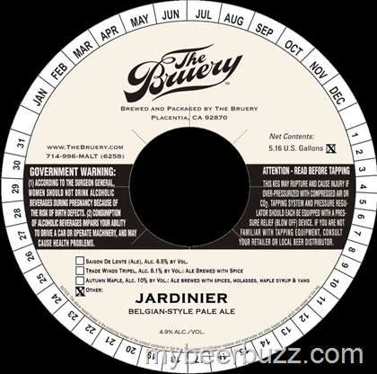Yes these are only keg labels, but I knew you’d want to see two beers coming from The Bruery. Jardinier is a Belgian-style Pale Ale (4.9% ABV) and Oaked Old Richland is a hoppy American barleywine (11.1% ABV).