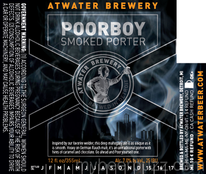 Today we get to see the bottle packaging for Atwater Brewery Poorboy. This smoked porter is “heavy” on German Rauch malt, it will be packaged in 12oz bottles and the beer comes in at 7% ABV.