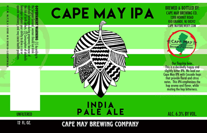 Here’s the bottle packaging for Cape may Brewing Cape May IPA. This flagship beer will use Cascade hops, it will be packaged in 12oz bottles and the beer comes in at 6.3% ABV.