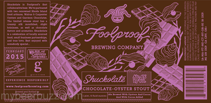 Here’s an interesting new beer coming from Foolproof Brewing in Pawtucket, RI. This is Shuckolate and it is a Chocolate-Oyster stout. This beer is Foolproof’s very first co-brew and it is brewed with Walrus& Carpenter Oysters and Garrison Chocolates. This Feb 2015 release will be package din 22oz bottles and the beer will come in at 6% ABV.,