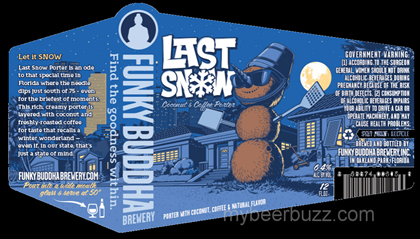 This morning we get to see a new beer coming to bottles from Funky Buddha Brewery in Oakland Park, FL. This is Last Snow and it is a porter brewed with coconut and freshly roasted coffee. This beer will now be packaged in 12oz bottles (6-packs) and the beer comes in at 6.4% ABV. Stay tuned for release details.