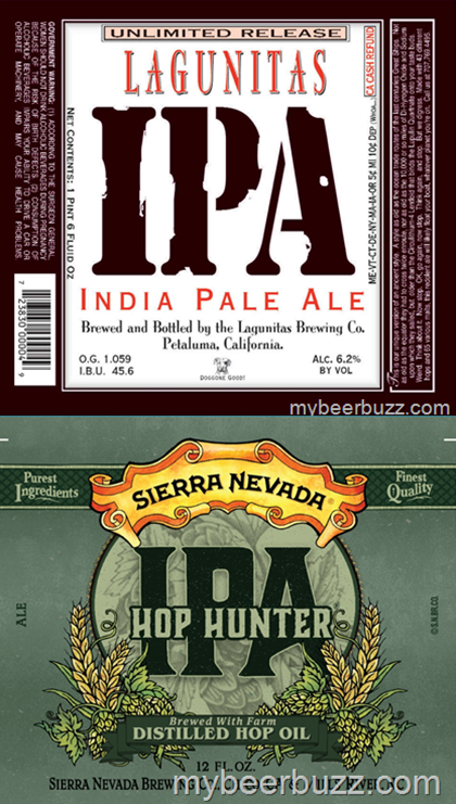 Lagunitas Brewing has filed suit in the California North District Court and they are claiming the style and “IPA” lettering used on the Sierra Nevada Hop Hunter IPA packaging is too similar to their IPA packaging. Details from the suit are below: