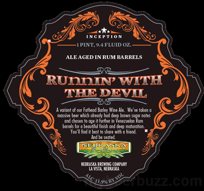 Here’s a new beer coming to the Inception Series from Nebraska Brewing in La Vista, NE.  This is Runnin’ With The Devil and it is a variant of Nebraska Fathead Barleywine.  The beer is age din Venezuelan Rum barrels, it is packaged in 750ml bottles and the beer come sin big at 11.9% ABV.