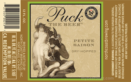 Here’s a new bottle coming from North Coast Brewing in Fort Bragg, CA. This is Puck The Beer and it is a dry-hopped Petite Saison. Look for Puck to be packaged in 12oz bottles.