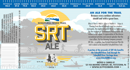 The latest Sly Fox beer is also a tribute to a beloved recreational resource. A portion of the proceeds from the sales of SRT ALE will be donated to improve and maintain the 130-mile Schuylkill River Trail (SRT) that meanders near the brewery in Pottstown, PA, as well as Sly Fox's original Brewhouse & Eatery in Phoenixville, PA. The beer's launch will take place over several days as it journeys down the southeastern Pennsylvania trail from Pottsville to Philadelphia.