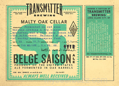 Today we get to see the bottle packaging for Transmitter Brewing (Long Island City, Queens NY) S5 Belge Saison Ale. This beer is fermented in red wine barrels with brettanomyces, it will be packaged in 750ml bottles and the beer comes in at 7.1% ABV and 22 IBU.
