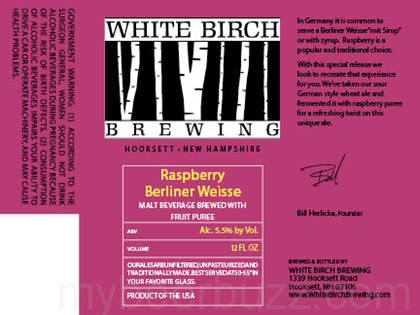 Today we get a peek at two tart brews coming from White Birch Brewing in Hooksett, NH. Raspberry Berliner Weisse uses fruit puree with White Birch Brewing’s sour German-style wheat, it will be packaged in 12oz bottles and it come sin at 5.5% ABV. Blueberry Berliner Weisse also starts with the German-style wheat ale and the beer is soured with Lactobacillus and fermented on blueberries. This is only a keg label so far, but I suspect we’ll see bottles. This beer also comes in at 5.5% ABV.