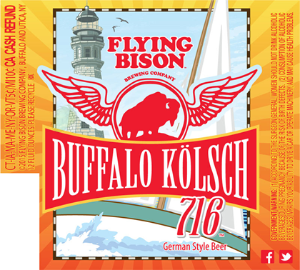 This is Buffalo Kolsch 716 from Flying Bison Brewing Co in Buffalo & Utica, NY.  This German-style Kolsch uses pilsner and wheat malts as well as German hops.  Look for Buffalo Kolsch to be packaged in 12oz bottles. We also have Bisonfest Oktoberfest Lager 12oz bottles.