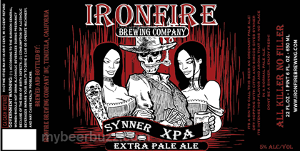 This afternoon you get to see five cool (but frightening) labels coming from Ironfire Brewing Co in Temecula, CA. Synner XPA is an Extra Pale Ale that uses Citra and Simcoe in the dry-hopping and it comes in at 5% ABV. Judge, Jury & Executioner is a Triple IPA uses “continuous hopping from the mash tun to fermenter with seven high-alpha hop varieties from three continents.” This beer comes in at 11.2% ABV. Last Rites is a Bourbon barrel-aged Triple Chocolate Imperial Stout (16% ABV), Boot Hill Killer is a Bourbon & Rye Whiskey barrel aged Coffee Stout (7.5% ABV) and The Outcast Dead is a Barrel-aged Imperial Red Ale (10.5% ABV). These are all 22oz bottles.