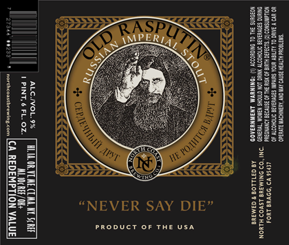 Here we have the latest packaging tweak for North Coast Brewing’s classic Old Rasputin. This beer is packaged in 22-oz. bottles and the beer will remain @ 9%-AbV.
