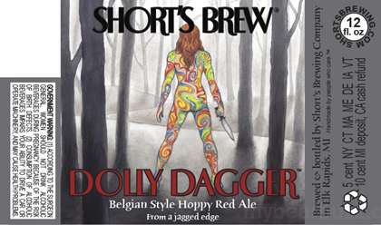 Here’s the latest packaging update for Short’s Dolly Dagger. This beer is a Belgian-style hoppy red ale (from a jagged edge) and it will remain in 12oz bottles.