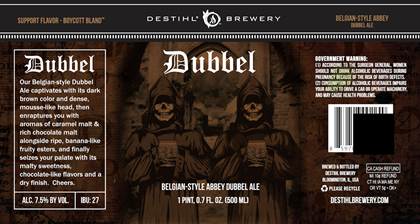 Here we have the updated packaging for Destihl Brewery Dubbel. This Belgian-style Abbey Dubbel ale will remain at 7.5%-AbV and 27 IBU and this is the 500ml bottle label. .