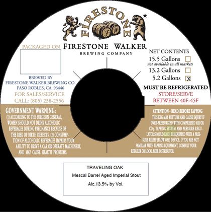 Here’s an interesting new keg label coming from Firestone Walker.  This beer is called Traveling Oak and it is a Mescal barrel-aged imperial stout.  Not sure if this one will make it beyond kegs, but the beer does come in big @ 13.5%-AbV.