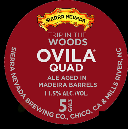 So far this is only a keg label, but stay tuned. This is Sierra Nevada Trip In The Woods Ovila Quad. This beer is aged in Madeira barrels and it come sin big at 11.5%-AbV.