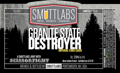 Here’s a new Smuttlabs beer coming from Smuttynose. This is Granite State Destroyer and it is an Imperial Corn Lager brewed with Scissorfight Records. This is a 1 quart bottle and the beer comes in at 7.5%-AbV.