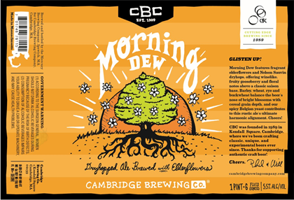 Here’s a new bottle coming from Cambridge Brewing in Cambridge, MA. This is Morning Dew and it is a dry-hopped ale that is brewed with Elderflowers. Morning Dew uses Nelson Sauvin hops and Belgian yeast, it will be package din 22oz bottles and the beer will come in @ 5.5%-AbV.