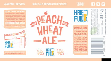 Here we have a new can coming from Half Full Brewery in Stamford, CT. This is Peach Wheat Ale, it will be packaged in 12oz cans and the beer will come in at 5.5%-AbV. We also have Pumpkin Ale (6%-AbV).