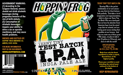 Here’s an interesting new bottle coming from Hoppin’ Frog. This is Teeny Tiny Test Batch IPA and it is one of a series of test IPA’s that will eventually hit the larger 10bbl system. This version will be package din 22oz bottles and the beer will com in at 7%-AbV and 55 IBU.