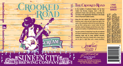 Here’s a new bottle from Sunken City Brewing Co in Hardy, VA. This is Crooked Road and it is a Virginia Cream Ale that will be packaged in 22oz bottles. This beer will hit 6.6%-AbV. We also have the limited release Nachthexen German-style wheat bock (7.8%-AbV, 25oz) and Surfside Wheat (220z bottle)